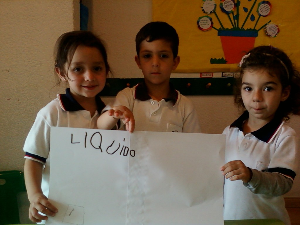 TRABAJAMOS CON LOS CONCEPTOS, SÓLIDO, LÍQUIDO Y GASEOSO, AQUÍ ESCRIBIMOS LA PALABRA LÍQUIDO.