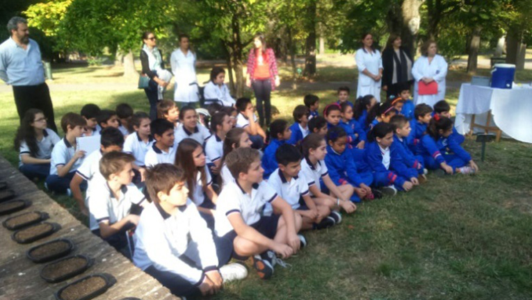 El 14 de abril alumnos de 5º y 6º año del colegio Nubarian plantaron junto a los alumnos del colegio Nersesian